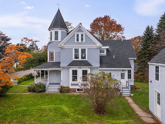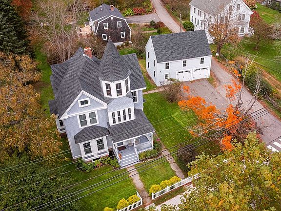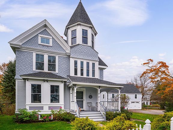Steeped in maritime history, 119 Pepperrell Road in Kittery Point, is a grand Victorian masterpiece dating back to 1860. Set on a corner lot, fronted by a charming white picket fence, this former sea captain's home exudes coastal elegance. Upon entry, you'll be greeted by a grand staircase, original wooden floors, high ceilings, a stained glass window in the stairway and tasteful modern upgrades. In 2016, the home was taken back to the studs and completely renovated including new roofing, windows, insulation, sheetrock, with modern heating, plumbing, and electrical systems. The meticulous renovation marries historical charm including original pocket doors, stairways, door and window casings and original stained glass entry doors with contemporary comforts, including a modern kitchen and baths with heated tile floors. The 389 square foot finished attic features a unique office space in the turret, offering inspiring vistas. No detail has been overlooked, showcasing quality craftsmanship throughout. Relax on the wrap-around porch, taking in the serene surroundings. Moments away, Pepperrell Cove offers dining and Town Docks for your coastal adventures. The property includes a heated basement, off-street parking, and a two-car barn with a second-floor walk-up. This is an opportunity to embrace coastal living and own a piece of history in the picturesque seacoast of Maine.