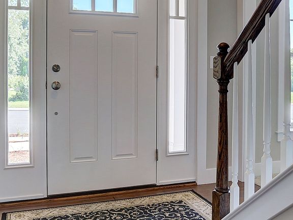 This 2-story home boasts an attractive exterior with welcoming front porch complete with decorative posts.. The 2-car garage opens to a mudroom entry with built-in lockers. The open floor plan includes 9'ceilings on the first floor and a convenient flex space room to the front of the home. Hardwood flooring in the foyer extends to the powder room, mudroom, kitchen, and breakfast area. The kitchen is well-appointed with cabinetry featuring decorative crown molding, Cambria countertops with tile backsplash, a pantry, and stainless steel appliances. The kitchen opens to the breakfast area and family room with gas fireplace featuring stone surround and stylish shiplap detail above the mantle. The 2nd floor includes 4 bedrooms, 2 full bathrooms, and a laundry room. The spacious owner's suite features an expansive closet and a private bathroom with tile shower and double bowl vanity.