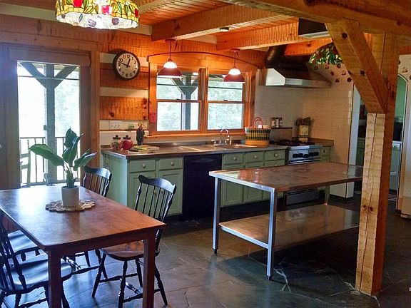 A "mountain home" here in the Piedmont. Minutes to the UNC Park and Ride, shopping and more. The engineer-builder-owner built this to last! It has radiant heat, hand hewn beams, solar hot water, slate floors and more. RV septic, water and power stations, too, for a fun RV guest suite. Enclosed garden space with water spigot.