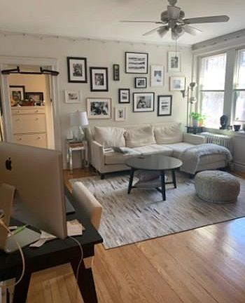 NO FEE This large one bed apartment has abundant sunlight and overlooks the street & courtyard. Featuring a separate kitchen with eat-in area and a recently renovated bathroom. Hardwood floors throughout, two walk-in closets, & a spacious living room great for entertaining. Heat and hot water included, laundry in building. Located near shops, restaurants, and public transportation!