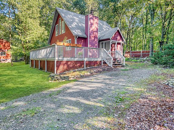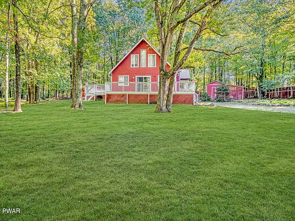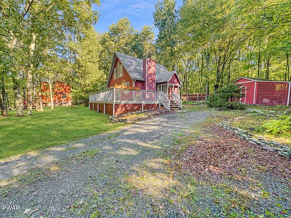 EXPERIENCE NATURE'S BEAUTY IN THIS 3 BEDROOM, LAKE VIEW CHALET WITH VAULTED CEILINGS, A GLORIOUS FRONT DECK, SPACIOUS YARD, & BRICK FIREPLACE! Just 90 minutes to NYC & located in the desirable Delaware Valley School District find this perfect retreat. Situated on almost a half acre, the property offers access to 3 community lakes, an outdoor swimming pool, a baseball field & basketball courts. Offering adorable curb appeal, the rustic red exterior w/the changing fall foliage are a work of art! Inside cozy up to your brick faced fireplace in your 2 story living room! Glass doors to your supersized front deck are perfect for barbecues, as well bird, deer, all things nature watching! 2, first floor bedrooms plus full bath! Huge loft area plus 3rd bedroom! Click the 3D tour & enjoy!