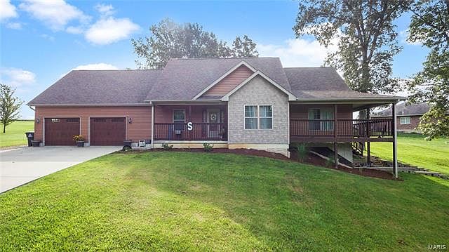 Built in 2016, this sprawling ranch style home is tucked on a dead-end road among mature shade trees. The wrap-around deck will invite you to have a seat and stay a while. Step inside and you are greeted with gorgeous hardwood flooring in the spacious living room. A few steps further and you will find a large kitchen with an abundance of beautiful cabinetry and tiled backsplash, a walk-in pantry and stainless steel appliances that will remain. A dining room is adjacent and has sliding doors leading to the covered back deck. The main level offers three bedrooms and 2 full baths. A bonus room above the garage makes for a great fourth bedroom. Youll find a full, unfinished, walk-out basement that has rough-in for a future bath, as well as a safe/storm room. Enjoy the conveniences of main level laundry (with extra hook-ups in the basement too) and a central vacuum system. An attached two car garage is oversized and offers plenty of room for vehicles and storage. Dont miss out!