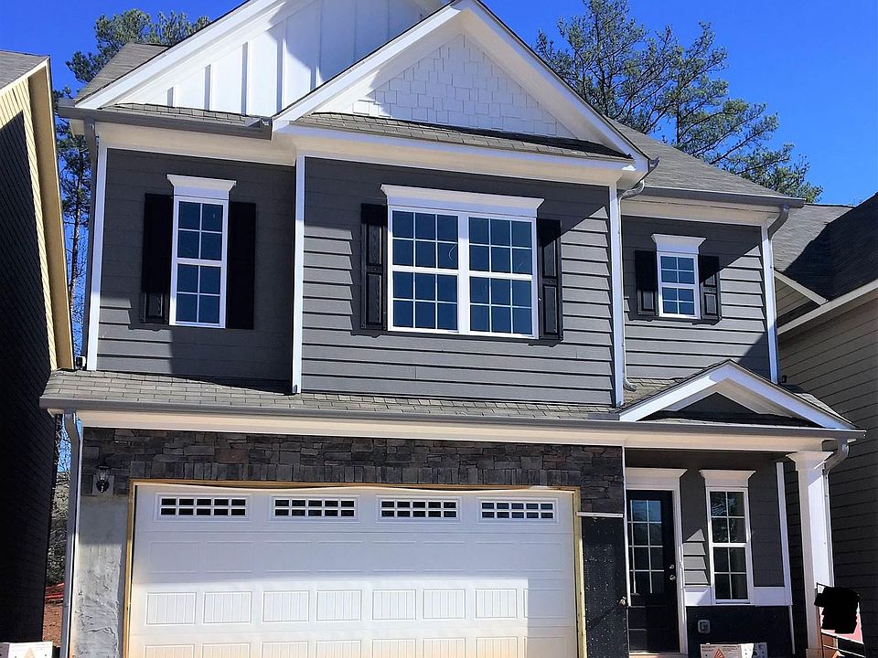 The Braselton Plan. Homesite #107. 3 Bedroom/2.5 Baths. Dramatic entrance w/ laminate foyer leads to kitchen featuring granite countertops, 42" cabinets and large island. Walk-in pantry provides additional storage space. Great room w/ fireplace steps out onto patio. Upstairs is walk-in laundry and loft. Owner's suite features vaulted ceilings, large bath w/ marble countertops and walk-in closet. Secondary bedrooms both have walk-in closet. Laminate floors on whole main level.