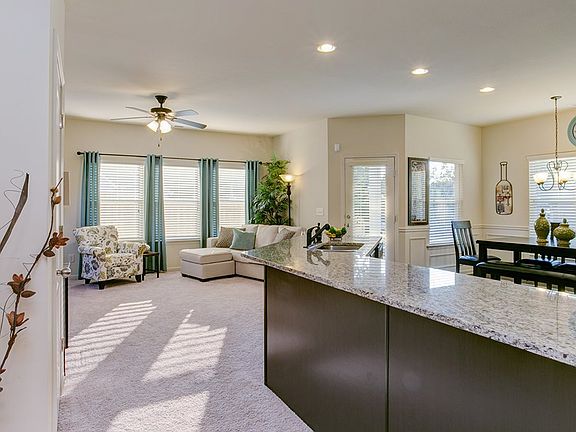 The Braselton Plan.. Homesite #107. 3 Bedroom/2.5 Baths. Dramatic entrance w/ laminate foyer leads to kitchen featuring granite countertops, 42" cabinets and large island. Walk-in pantry provides additional storage space. Great room w/ fireplace steps out onto patio. Upstairs is walk-in laundry and loft. Owner's suite features vaulted ceilings, large bath w/ marble countertops and walk-in closet. Secondary bedrooms both have walk-in closet. Laminate floors on whole main level.