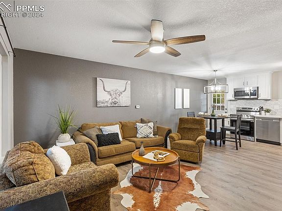 Welcome to this beautifully updated home, featuring three spacious bedrooms and two modern bathrooms. Renovated in 2023, it boasts a brand-new roof and water heater, ensuring upgrades for long term benefit! The open concept living, dining, and kitchen area is perfect for today’s lifestyle, offering a seamless flow for both everyday living and entertaining. As you step inside, you'll be captivated by the stylish finishes and attention to detail. The updated lighting fixtures illuminate the space beautifully, creating a warm and inviting atmosphere. The kitchen is a chef's dream, featuring a custom backsplash, sleek stainless steel appliances, and ample counter space for all your culinary endeavors. The spacious backyard is an outdoor oasis, perfect for relaxation and entertaining. Whether you're hosting a barbecue or enjoying a quiet evening under the stars, this backyard has plenty of room for it all. Mature trees in the front yard provide shade and enhance the curb appeal, making this home a standout in the neighborhood. Additional features of this charming home include modern bathrooms with elegant fixtures, generously sized bedrooms with ample closet space, and 1 year old carpet and luxury vinyl throughout. Located in a conveniently located neighborhood, this home is close to Peterson space force base, powers corridor, and shopping centers, making it convenient for all your needs. Don’t miss the opportunity to make this fully renovated house your new home.