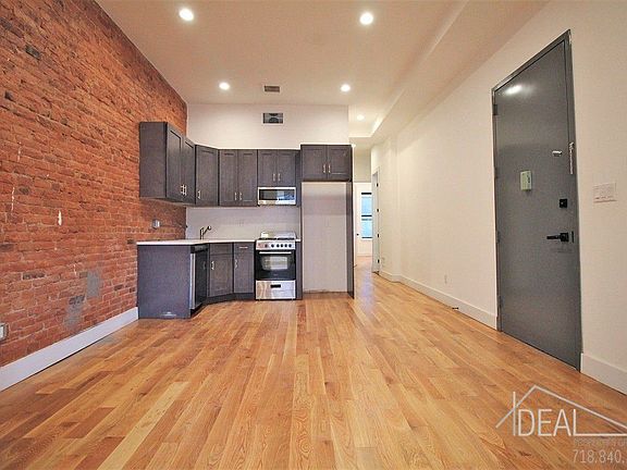 NO FEE! Welcome to this Stunning & Spacious Bright 3 Bedroom 2 Bathroom with Private Backyard! Just finished a total renovation with stunning features like 10+' ceilings, Central Air, Chic kitchen with SS appliances including dishwasher, Modern sleek bathrooms, Wide plank oak floors, charming exposed brick, and your very own Laundry Room! The bedrooms are spacious & Sun-filled rooms with plenty of closet space. Super close to the J train and B45 bus as well as the A/C Trains about 10 min away. All the cafes, lounges, bars, restaurants are conveniently nearby being by the border of Bed-Stuy and Bushwick and right near the lively streets of Broadway & Malcolm X Blvd.