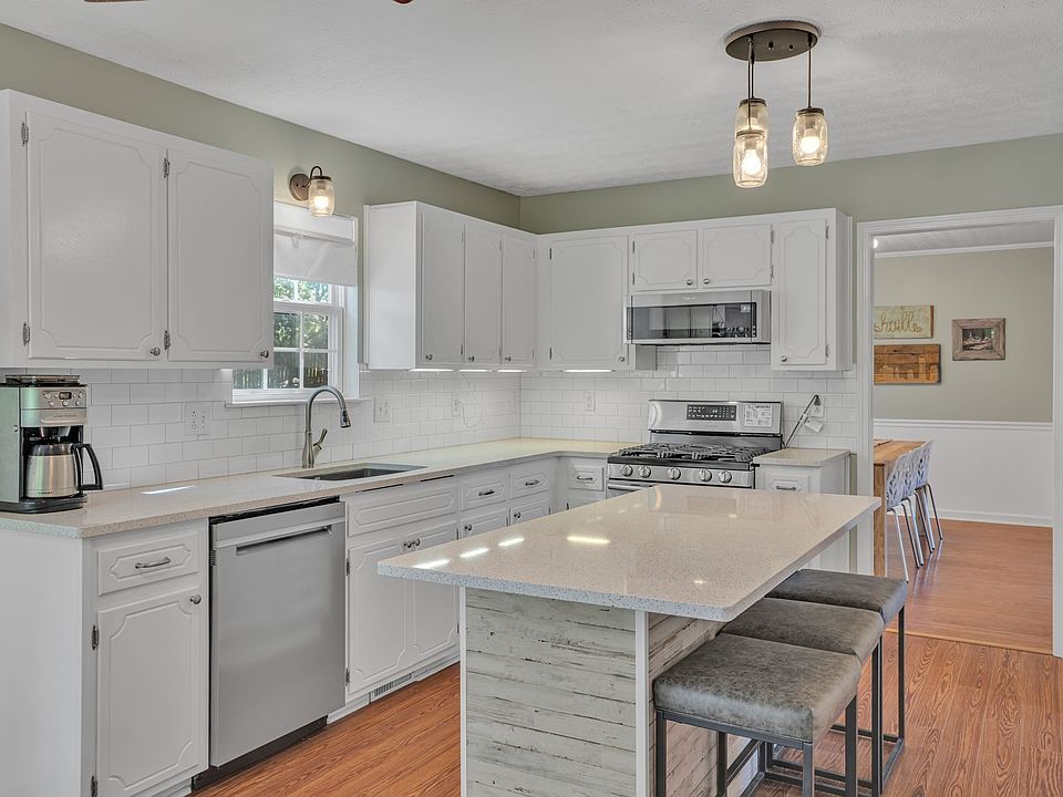 Indian Lake Peninsula! Perfect for a first time buyer or upgrader from condo living. This nicely updated home is just minutes from all the great shopping and fun at Indian Lake and under 10 min drive to Moby Dicky's if you dream of lake life or Drake's Creek Park if your kids are into sports activities. If you love privacy, you'll enjoy the peaceful woods, plus a fully fenced yard—ideal for pets and kids to play safely. Relax on the new elevated deck or cozy up by the wood-burning fireplace as fall sets in. Inside, the fresh paint, new flooring and updated kitchen (with a gas range) make it a low hassle move-in. Need extra space? The huge bonus room is perfect for a home office, playroom, or a family movie area. Don't miss this one in a small neighborhood zoned for top area schools --there have only been 2 MLS sales since '23.