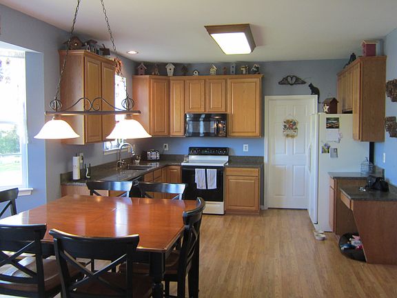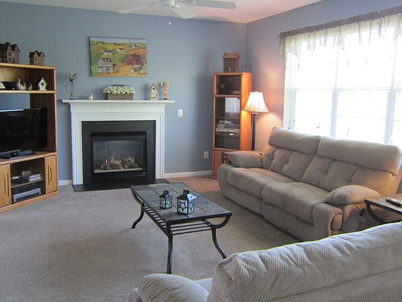 This is your new home! From the moment you step onto the relaxing front porch, this 4 bedroom, 2.5 bathroom custom colonial home welcomes you with its impeccable landscaping, charm and ambiance. The dramatic 2 story foyer allows for ample natural light that accents the beautiful hardwood floors and the gorgeous chandelier. To the left is a formal living room which flows into the spacious family room with an inviting gas fireplace as a focal point. The eat-in kitchen overlooks the family room and boasts a large pantry, Pergo flooring, 42 inch cabinetry, granite countertops, recessed lighting and a breakfast area with bay window. The kitchen also connects to the formal dining room which features crown molding. A large laundry room with laundry sink and a powder room complete the first floor. The second floor is home to a hall bath with tile floors and dual vanity and 4 nicely sized bedrooms. This includes an owner's suite highlighted by French doors, large walk in closet, ceiling fan and a master bathroom with soaking tub, separate shower, tile floor and dual vanity. As if that were not enough, the entire basement has been finished and includes Pergo flooring, wainscoting, built in shelving, built in bar, an electric corner fireplace and Bilco doors leading to the backyard. A two car garage with ample storage and a scenic backyard help complete the package. All this and move in ready. What more could you possibly ask for?