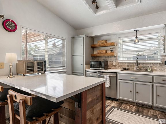 Welcome to this beautifully updated 3-bedroom, 2-bathroom home in the desirable Dayton Valley community, offering 1,316 square feet of comfortable living space. Step inside to discover a newly remodeled kitchen featuring sleek quartz countertops, stainless steel appliances, and modern cabinetry. Enjoy stylish laminate flooring throughout the main living areas, plush new carpet in the bedrooms, and fresh interior and exterior paint. A cozy fireplace and charming wood panel accent wall add warmth and, character to the living room, while the primary bathroom has been tastefully remodeled for a fresh, contemporary feel. The spacious 2-car garage provides ample storage, and the low-maintenance backyard is perfect for entertaining, complete with a real wood deck, a relaxing gazebo, and—just in time for summer—a 10x16 party bar/workshop with full power. There's even a designated RV parking area for your toys and extra vehicles. This home is move-in ready and packed with upgrades you’ll love!