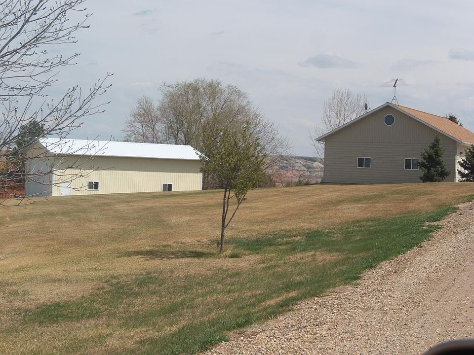 Lots of possibilities here! First garage - 36' x 58' with 27' x 54'concrete driveway includes finished space of bedroom, 3/4 bath, kitchen, & office/living area. 2 overhead doors & 3 walk-in doors. Rural water, air conditioning,satellite dish,septic system. Built in 2000. Second storage building: 2006, 24' x 54' Overhead door 18'wide/15'high. Driveway 24' x 58' concrete. Above Grade SF: 2008.00.