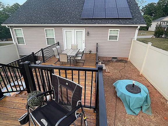 Above ground swimming pool with 2 tier deck. Natural gas for, cooking, clothes dryer, fireplace insert. Tankless hot water heater. Air conditioner unit replaced with a 21 seer unit veritable compressor speed . Solar panels, electric bill - average cost $55 per month, natural gas bill > $18.00 to $35.00 per month. Very efficient house. Additional cabinets being added to the home see pictures attached