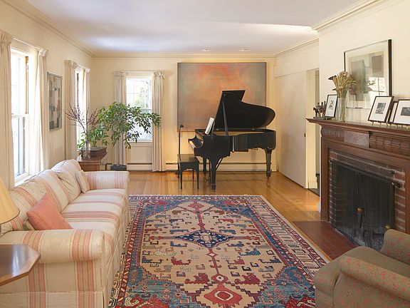 High on the hill on one of Watertown's most beautiful residential side streets, set back from the sidewalk, and turned sideways to allow maximum sun exposure, this spacious & well-designed single-family residence offers what buyers seek: elegant and generous spaces for entertaining, including an oversized living room with three exposures and a fireplace with a beautiful hand-carved mantelpiece; hardwood floors and good-size windows throughout; 5 bedrooms with a spacious master bedroom. 3 full baths & 2 half-baths. The library on the 3rd floor has magnificent sweeping views of the property's garden and yard, as well as of lovely neighboring houses and gardens. At the lower level, there is a very large recreation room with 2 murals painted by a celebrated children's book illustrator. European-style wine cellar & bright laundry room. Gas-fueled Buderus boiler has 5 zones. There is a large workshop with a built-in bench. Showings begin at Sunday open house 12:00-1:30