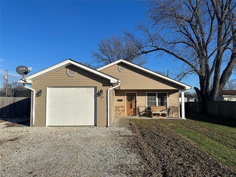 This 3 bedroom, 2 bath home is only 8 years old and sets on a double lot, It has a large back yard with a privacy fence, an attached one car garage with a driveway accommodating 4-5 extra parking spots for off-street parking and so much more. The property, is spacious, has a lot character and is ready for new owners. Entering the home you will find an open floor plan with a large kitchen, including custom made cabinets and countertops, the dining area and living room that leads back to the hallway where you will find the master bedroom and master bath, 2 other bedrooms, main bath and the utility room which leads out the back door to the fenced in back yard. This home is centrally located in the heart of Bowling Green MO and is accessible to everything there, including minutes away from the public schools and just a few miles away from the St Clement's Parish Catholic school in St Clement's.