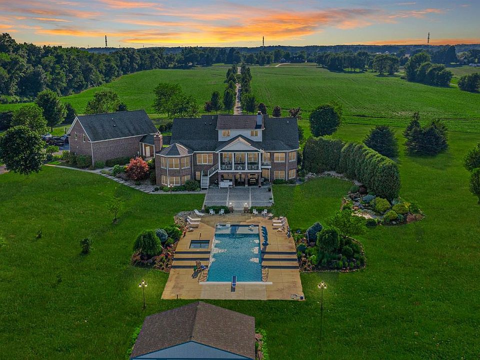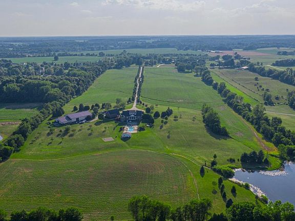 Luxurious and unparalleled beauty both inside and out. Located on 47 acres, this magnificent estate provides both privacy and your own piece of paradise. Immaculately maintained, the home features a large fully-stocked pond, a gunite in-ground pool/separate hot tub, pool house & a heated two-level pole barn. The meticulously crafted 5 bedroom 6 bath home, features a grand 2 floor entry way with marble floors. The home combines expectational finishes throughout, including tray ceilings, granite and silestone countertops, 4 fireplaces and a beautiful flooring. A Chefs Kitchen, wet bar with copper sink and a butlers pantry bring a whole new dining at home. The walk-out basement is home to a custom-designed second indoor kitchen and dining area, a guest suit and a theatre room perfect for entertaining, plus a complete outdoor kitchen. The home also features a whole-house speaker system, central vac w/ toe kick along with, 2 bedroom 1 bath related living area above the 4 car heated garage.