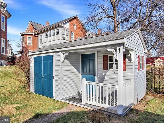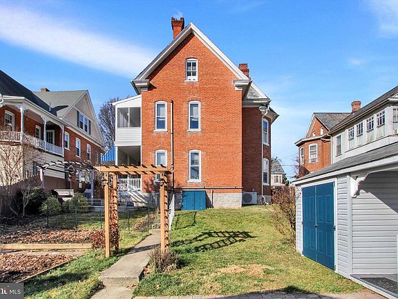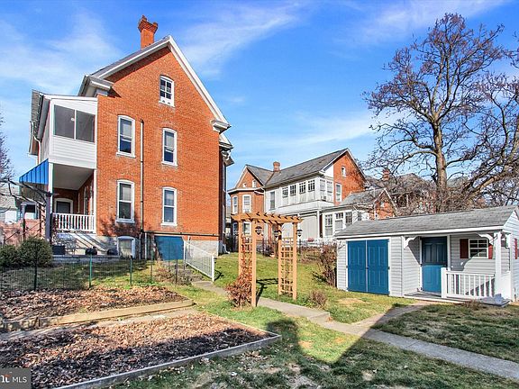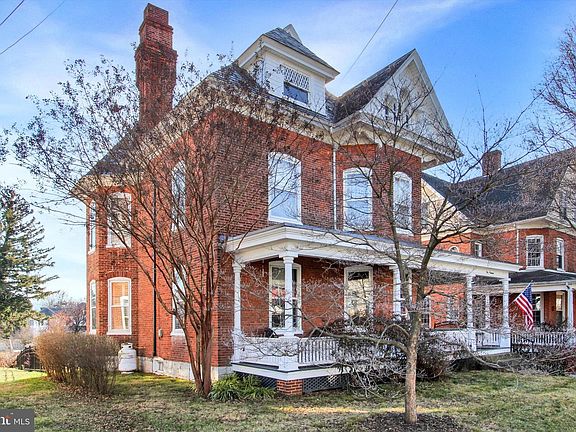 Meticulously maintained brick historic home with all the sought-after details including original chestnut interior pocket doors, pan head chandeliers and several antique wall light sconces. Home boasts 2 built-in china cabinets, refinished hard wood floors throughout, dual staircases, gas fireplace with original mantle and grand chimney, 3 covered porches, 4 gorgeous roof gables. Foyer has original leather stamped wainscoating, 1895 original post lamp & stained glass window. Kitchen & bathrooms have been upgraded w original built-in pantry, wood trim & solid wood and brass door knobs. .22 acre lot, fenced rear yard and newer 2-car oversized detached garage w storage area, limestone patio, garden shed with hot tub. Recent upgrades include newer front porch roof, mini-splits that provide heat and A/C and new kitchen appliances. Additional 3 parking spaces in rear in front of garage. Walking distance to hospital, schools, grocery store and parks.