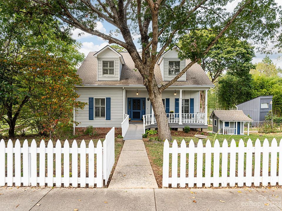 NOW OFFERING IMPROVED PRICE: Open the gate of a pristine white-picket fence to find a storybook home in an ideal location. Minutes from vibrant downtown Weaverville, this updated Cape Cod feels like home. Featuring an idyllic front porch, owner's suite on main, hardwood floors & two brick fireplaces. Updated kitchen with granite countertops, stainless steel appliances & walk-in pantry. Kitchen & dining room were made for entertaining! Large main-level laundry room. Upstairs, find two bedrooms with en-suite bathrooms. Basement has heated, finished rooms waiting for your imagination. Fresh paint & new carpet add a contemporary vibe to this classic floorplan.