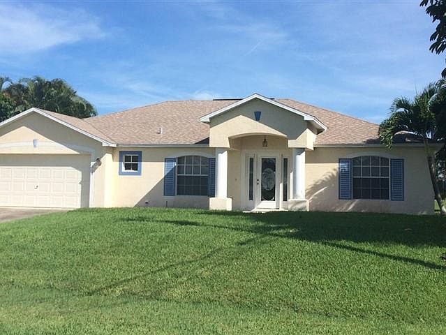Impeccably clean Gulf Access home, located just one bridge to the river! All Assessments Paid! This fantastic home features 4 bedrooms, an open kitchen with large island, great room with vaulted ceilings and a formal living or dining room. The oversized master bedroom includes a sitting area overlooking the beautiful pool and spa which feature custom decorative tile work and an in water table with jetted seating! The pool has both electric heating and solar blankets, an automated pool vac and...