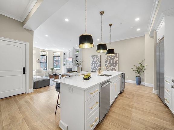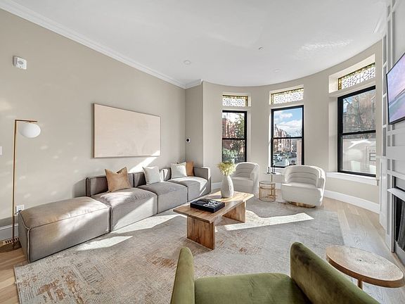 New Construction 3 bed 3.5 bath parlor and garden duplex featuring large private walk out back patio & private front stoop perfectly situated on Back Bay Bay/South End Line. The architecturally stunning 25 ft wide brownstone has been taken down the shell & rebuilt entirely new with high end luxury finishes. The grand feel carries over to the interior, where the soaring 10 ft ceiling magnify the beautiful millwork & finish carpentry. The sprawling open concept living dining area features stunning gas fireplace with built ins & the luxurious chef's kitchen featuring custom cabintetry, pantry Thermador appliances, 11 ft Island. With no townhouses across the street, the living room gets great light & has quant views down treelined street to Titus Sparrow Park. Two bedrooms feature en suite baths, the enormous primary suite boasts luxurious 5 piece bath w soaking tub, & large walk in closet. Downstairs An enormous 2nd living space makes for great playroom, gym, or entertainment