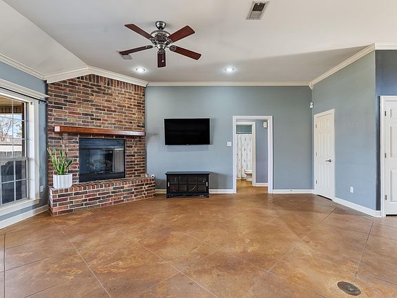 Wonderful One-Level Brick Home! Move-in ready with exceptional curb appeal, this beautifully designed home boasts an open and inviting floor plan perfect for both family living and entertaining. The primary suite is complemented by a separate office and two spacious guest bedrooms. The bright and airy family room flows seamlessly into the open eat-in kitchen with gas range & breakfast bar. Step outside to a fantastic covered patio, ideal for outdoor gatherings, overlooking a large, level backyard. Situated in a prime location, this home is a must-see! Additional information: new carpet (3/2025), new microwave (3/2025), HVAC 2023, Roof 2021