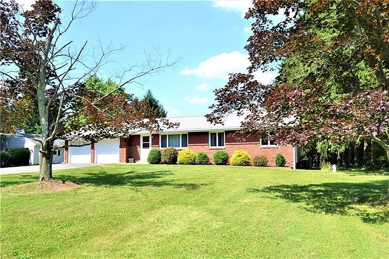 Charming RANCH HOME located on 1 full acre lot. Meticulously maintained with beautiful Hardwood throughout. NEW AC 2016 and Updated Furnace. New well pump 2014. New stainless Dishwasher. Large 2 car garage with additional storage area, The 3 season sun-room over looks the large back yard and fire-pit. Plenty of room to play and enjoy nature but 2 minutes to 79/19. Strawberry Ridge Golf course/restaurant just up the road. Finished basement has room for entertaining and also a great workshop area as well as a full bath. Enjoy quiet evenings on the back patio or sitting in the 3 season room. 5 minutes to Seneca Valley High School, shopping, gas,restaurants and Historic Zelienople and downtown Harmony. Hurry!!