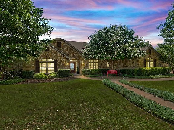 Gorgeous home in Aledo ISD! Built in 2006 by the only owners, this home is an entertainer's dream that sits on a 1 acre, corner lot. One story, lovely open floor plan w lots of natural light. Spacious, eat-in kitchen w oversized island and full size dining area. Open living room w stone fireplace will not disappoint! Four spacious, split bedrooms and lovely, spacious study w fireplace is a quiet retreat. Inviting pool w water slide for family fun or enjoy beautiful sunsets while relaxing in the grotto or on the covered patio in front of the outdoor fireplace! Spacious fenced yard with lovely landscaping. Oversized, side entry, three car garage allows for plenty of storage! No HOA fees. This is a must see!