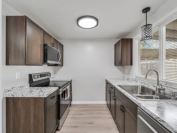 - Features: Flooring - Laminate, Dining Area, Countertops - Upgraded, Cabinets - Upgraded, Recessed Lighting, Remodeled, Slider, Stainless Steel Appliances
