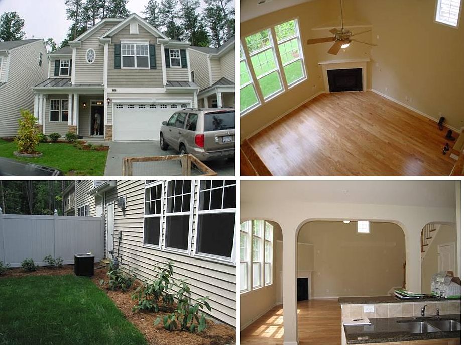 2-story single family home has 3 bedrooms and 2.5 bathrooms located in Chapel Hill. This luxury, small family condo home is in Vineyard Square, in the Chapel Hill-Carrboro Schools District. The nearest schools are Seawell Elementary School, Smith Middle School and Chapel Hill High School. The main level features modern luxury amenities such as hardwood floors throughout, granite countertops and stainless steel appliances in the kitchen. The dining room includes recessed lighting and a wall of windows. The kitchen is convenient to both the living room and dining space, with maple extended height cabinets, tile back splash, and stainless steel appliances included (new appliances in 2017 and 2019). The living area on main level includes a gas fireplace, surround sound wiring, a vaulted ceiling and a large wall of windows making for a spacious entertainment area . Outside features include a brick paver patio and two lockable storage sheds and 2 car garage. The unit does not share walls with the adjacent units- only the storage sheds have shared walls. All bedrooms are on the upper level and carpeted- new carpeting was installed in 2017. MBR has vaulted ceiling, includes a ceiling fan, walk-in closet and private bathroom with a dual sink vanity. A second full bathroom and the laundry closet are on this level. Enjoy the community play ground or walk to Homestead Park and Homestead Aquatic center. This community is also convenient to RTP, Durham and Raleigh with easy access to I-40, Duke Medical Center (15-20min), UNC Medical Center/Main Campus (10 min). Small pets are allowed for an additional fee, early move-in may be available in June, depending on current tenants. Tenant responsible for utilities