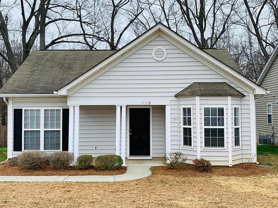 Everything brand new inside! Freshly painted gray throughout. New floors, carpet, stainless steel appliances, bathroom vanities and ceiling fans just to name a few. Walk in closet in master bedroom. On quiet street. Privacy in your backyard. Tenant responsible for lawn care. No pets. No section 8 accepted. 704-737-6633. Available now! One year lease. Tenant pays all utilities.