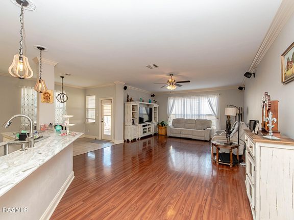 FOR SALE in Cypress Crossing Subdivision, Broussard, LA! This beautiful 4-bedroom, 2-bath home offers a BRAND NEW ROOF, 2,181 square feet of well-maintained living space. Built with brick and hardi plank, nine-plus-foot ceilings throughout, providing an airy, spacious feel. The home features stunning crown molding, window treatments, and attic access for added storage convenience. Inside, you'll find a separate shower, a garden tub, cultured marble and granite countertops, and a double vanity in the bathroom. The kitchen is equipped with a gas stove connection, electric washer and dryer, and plenty of counter space. The home has laminate and tile flooring, central air and heat, and rear yard access to a landscaped backyard with a covered patio and a workshop for additional space. BONUS is that this home did not flood in 2016 and it is located in an 'X' Flood Zone which does not require flood insurance. This property is truly a gem and won't last long. Call today for more information!