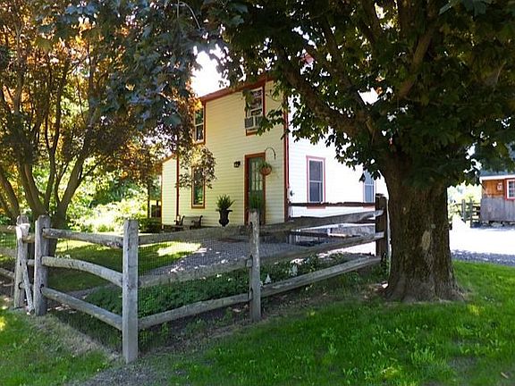 This tastefully restored farmhouse sits on almost two acres with landscaped gardens around the house and a meadow area leading down to a stunning pond. The property features a gourmet kitchen, hardwood floors throughout and has been renovated with future expansion in mind. Planning, Zoning and Septic approvals are all in place to increase of the house by an additional two bedrooms, bathroom, living/dining room and front porch. In addition, there is a finished barn with 900 sf of workshop space on the ground level and 900 sf of finished space on the second floor which is currently used as an office, exercise and play room. Front Door Entrance Hallway 8'x7' Features coat hanging space and built in closets. Hardwood floors. Half Bathroom 7'x5' Toilet, sink, washer and dryer. Living Room 18'x16' Wide board oak floors, wood paneled walls with build in entertainment cupboard. Twin French windows open out to screened mahogany deck. Pot belly pellet stove. Kitchen 19'x12' Solid cherry cabinets with custom built concrete countertops and back splashes. Cork floor, fireplace with wood burning insert and a farmhouse sink make this a 'chefs' kitchen. The large centre island and stainless steel appliances. Kitchen door opens out to large deck area with shade sails. Main Bedroom 24'x9' Solid wood floors and fitted closets. Second Bedroom 11.5'x9' Solid wood floors and fitted closets. Bathroom 9'x5' Sink, toilet, bath with shower. Barn Lower Level 600 sf of open workspace and 300 sf or storage. The building has been completely insulated and has a built in propane furnace. Sliding door lead out to the raised bed vegetable garden. Barn has a sink and water. A variance has also been granted by the Health Department to install a half bathroom. The barn links directly to the main house septic system. Barn Second Floor Access via a staircase on the outside of the barn this large 900 sf insulated storage area has been fully renovated and sheet rocked. The walls were spray foam insulated for efficiency. There are three skylights, a feature window at one end and French doors at the entrance. The floor is board finished with a large carpet. One window air conditioner has been installed. Ductwork from the first floor furnace provides heat. Forced air central heating throughout. Water softener. Well water supply. Septic system.