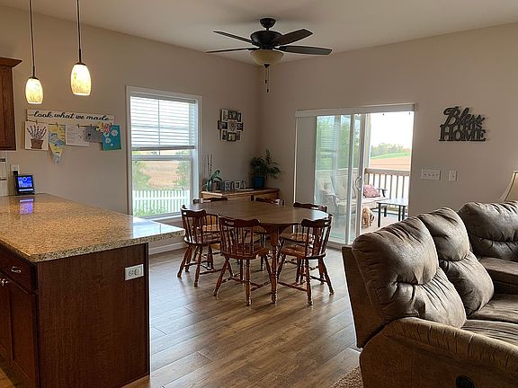 A country view on a quiet street across from the Tipton country club. This five bedroom, 2016, ranch style home has three bedrooms on the main floor along with a living room and kitchen along with the laundry room. The road currently dead ends, and there is no through traffic. The oversized three car garage has stairs that lead down to the basement which provides access to the two lower bedrooms, family room, and a bathroom just off the stairs. The utility room in the basement contains furnace water heater, whole house humidifier and water softener. You will love this home has all been necessities are on the main level. This home comes with a solar panels installed in November 2020, vinyl fence in the backyard and a screened in porch with stairs, leading down to the backyard, as well as, a raised bed garden.