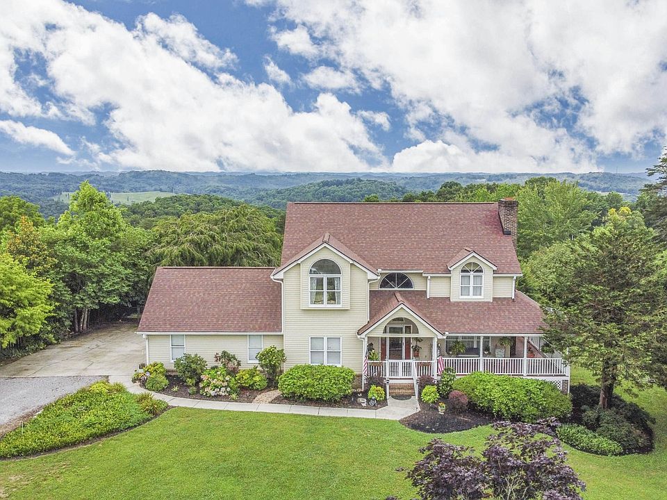 Mountain views are calling your name from good ol' Rocky Top! This 5 bedroom, 4 bath home comes with 5 subdivision lots making it spacious and private on a quiet cul-de-sac. The downstairs offers separate living quarters with a full kitchen, a sunroom, laundry area and extra storage. Custom blinds, 3 gas fireplaces-one on each floor, wrap around porch and 2 story storage barn. Master suite has jacuzzi tub and a private upper deck with spectacular views! Kayak pool for relaxing. Close to Norris Lake and Windrock Park. Beautifully landscaped with sugar maples, flowering crab apple, magnolia, dogwood, weeping cherry trees forsythia and burning bush. Fenced in yard and a doggie door for your furry friends! Book your showing and start singing Rocky Top today!