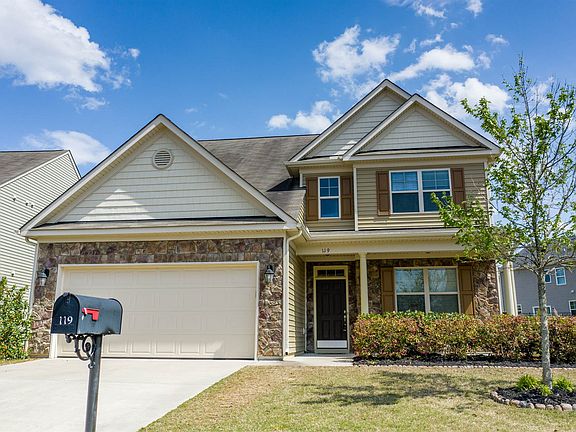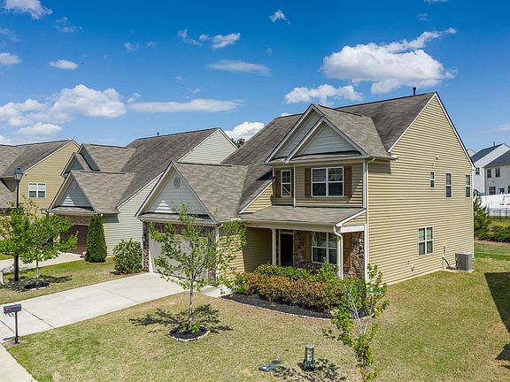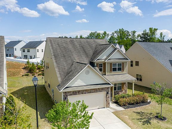 This well maintained home features 5 large bedrooms with one being on the first floor with a full bath, first floor office and open concept living. The living room is wired for surround sound. The kitchen has stainless appliances, granite counters, a gas range, tile back splash, and a french door fridge. You will also find a formal dining room with crown molding, wainscoting and a tray ceiling, separate second floor laundry room with front load washer and dryer included, a two-story foyer with wainscoting. The master suite has a tray ceiling, separate tub and tiled shower, and a large walk-in closet. Enjoy the outdoors on the patio and level back yard. Home warranty included. Fresh paint throughout this one owner home. Community pools, clubhouse, and playground included in the HOA.