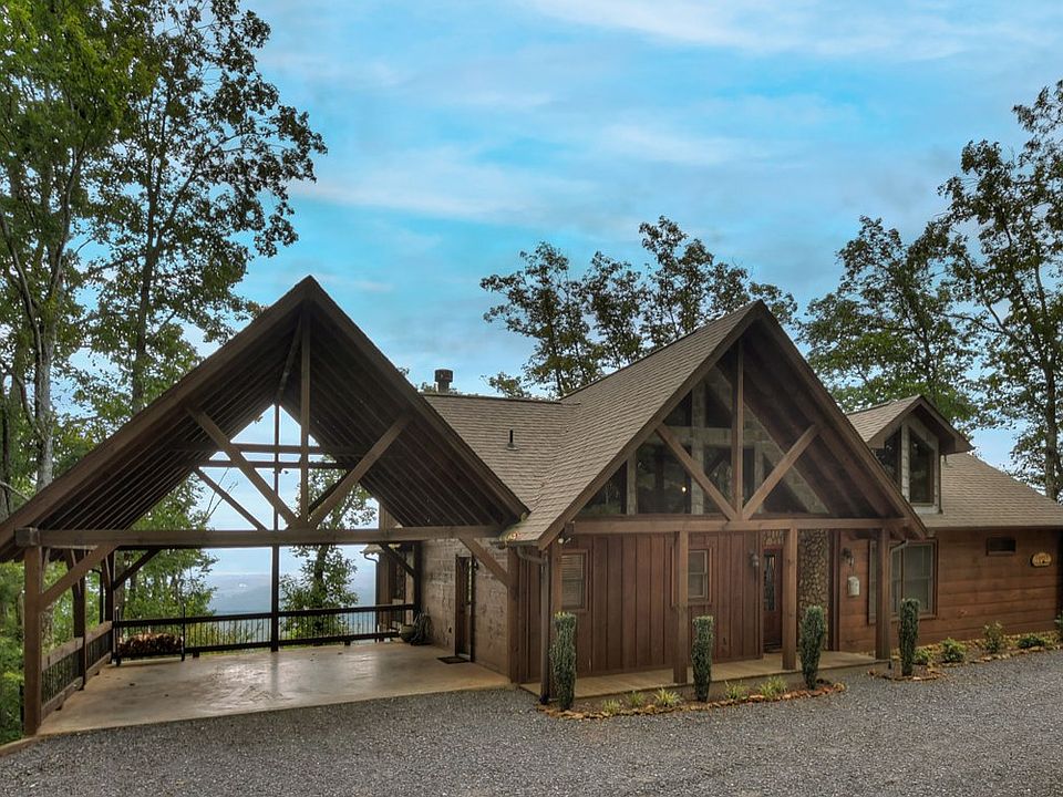 Living on cloud nine... less than five miles from downtown Blue Ridge, this mountain top retreat with dazzling panoramic year-round views is just what dreams are made of! The mesmerizing view just sets the stage for this elegant rustic cabin. This home showcases the best of mountain living with three bedrooms (two being master suites) and three and a half bathrooms and a beautiful blend of textures and finishes throughout. It also offers two family rooms - one on the main and one in the fully finished basement; indoor and outdoor entertainment spaces complete with fireplaces both inside and out; laundry on the main; carport; custom cabinets with granite & SS appliances; and more. Perched atop Sunrock Mountain, this dreamy lodge is just 4 miles from downtown Blue Ridge and a short drive to dining, entertainment and other necessities. An established short term rental, this home isn't just ideal for your next rental investment, but it's perfect for full-time living, too. Let's head up up and away to the magnificent Sunrock Mountain.