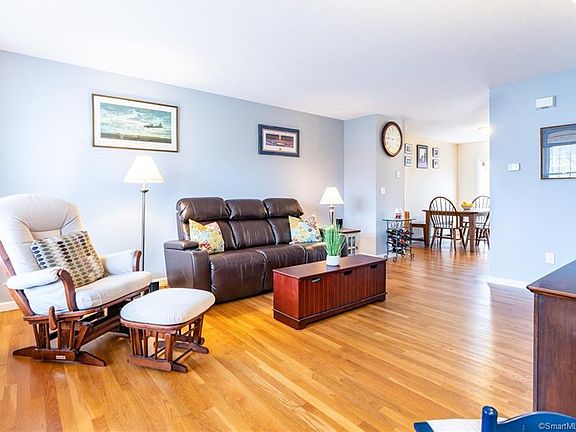 Located at the end of quiet cul de sac, which backs up to Hop Brook walking trails, giving you easy access to enjoy the great outdoors. Minutes from I84, Route 8, Post University, UConn Waterbury, Waterbury Hospital and St. Mary's Hospital. This light, bright and airy condo features high ceilings, plenty of windows, fresh paint and hardwood floors on the main level. Listen the sound of the birds off of the back deck through the sliding glass doors. Ample cooking and storage space in the kitchen with stainless steel appliances. The bedrooms offer plenty of closet space and brand new carpeting. One car garage to keep your car cleared in the winter months and cool in the summer months. A laundry room located in the basement is a great spot for storage. The propane heat and central air for low maintenance and energy efficiency. This complex is meticulously kept with great curb appeal! Book your private showing today!