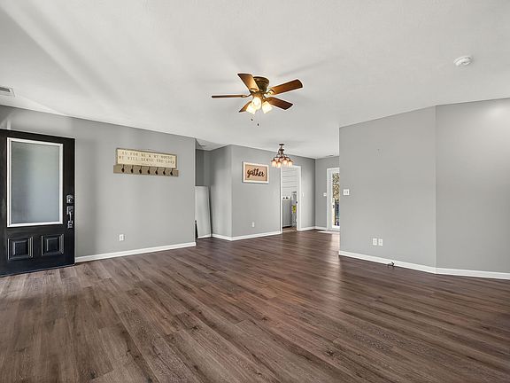Adorable and move-in ready 3-bedroom, 2-bath home located near the end of a quiet cul-de-sac. This well-maintained property features numerous updates throughout, including a new roof installed in 2023, flooring, paint and more. The home offers a split floor plan layout with no carpet, a spacious laundry room, and a cozy living area perfect for everyday living. Enjoy relaxing or entertaining on the back deck that overlooks a large yard with peaceful farmland views. Additional highlights include a one-car carport and a convenient location just minutes from town but in the county with no city taxes!
