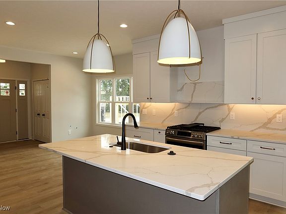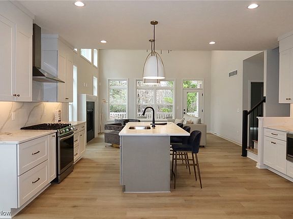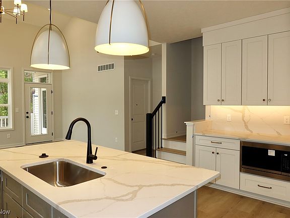 Beautiful new Stoneridge plan with 1st-floor primary suite available for a Spring 2025 move-in in the Brecksville/Broadview Heights school district! This brand-new open-concept villa features a 2-car garage, a full basement roughed in for a future bath, and a rear-covered composite deck with wooded views! Tasteful upgrades include luxury vinyl plank flooring, wrought iron spindles to the 2nd floor, custom cabinetry, black matte plumbing fixtures, and upgraded appliances. This well-designed plan showcases a covered entryway, a large eat-in kitchen with an accompanying dining space, and a 2-story Great room with floor-to-ceiling windows and gas fireplace. You will also find an open and airy 1st-floor primary suite that features a glass door that opens to the back covered deck. Retreat to the owner's bath with dual sinks, quartz counters, luxury vinyl plank flooring, a huge walk-in closet, and a tile shower. The oversized mudroom, powder room, and laundry room complete the 1st floor. Upstairs, you'll find an almost 200 square foot loft, and 2 additional bedrooms, each with their own walk-in closets and shared full bath. The full basement offers ample storage or flexibility for future finishing! Just 1.5 miles from I-77, 25 minutes from downtown Cleveland, and walking distance to shops, restaurants, and the community recreation center. Pictures are for illustrative purposes only as features and finishes may vary from actual.