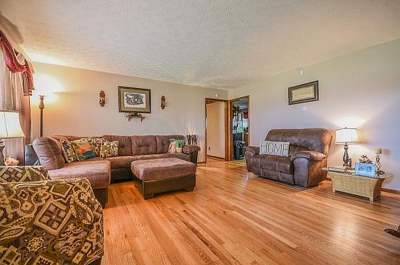 Welcome home, here's the 2 acre mini farm you've been waiting for with all the character you wanted and new updates you needed. Inside you will find new flooring, fresh paint, and refinished gleaming hardwood floors throughout. Large sun-room could be used for playroom, office, craft room, or a peaceful library to catch up on your reading. Relax in your den and overlook your brick fireplace with gas logs. Great natural light from your large windows in your living room. This dream kitchen is ready to handle all of your families large meals with new matching stainless steel appliances, plenty of prep space with all of your counter tops, and great places to store all of your cookware/dishes with cabinets in your kitchen and dining room area. Four generous sized bedrooms each with their own closet all on one level. Master has it's own updated private full bath. Great closet space throughout the upstairs. Large full basement with a large walk-in partially finished closet great for anyone who needs a place to store more clothing. Outside you will find places to entertain off the front deck, side patio area, and out back on your concrete patio. Out of your walk-out basement you will find a detached 2 car garage perfect for your trucks, toys, or any equipment you want to keep out of the weather. You needed a place for all the kids to play, well here is the back-yard of your dreams, well this one includes your own tree house, fenced in playground area, and multiple large flat areas perfect for any sport. You also needed a 30 x 40 barn with fresh paint, well now you have it with well water a short distance away. Property also has pear and apple trees that produce fruit. New heat pump to keep you warm and cool during every season.