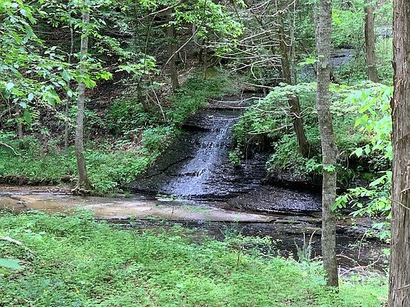 1056 sq ft vinyl siding home with 2 or 3 BR/1.5Ba. Home is located on 5 scenic acres. Property has a creek running along border with neighboring waterfall and an ADDITIONAL building site that is equally stunning. Home has a large covered front porch with a portion being screened in and a large (30'X40') metal shop/storage building. Yard is spacious and shaded.