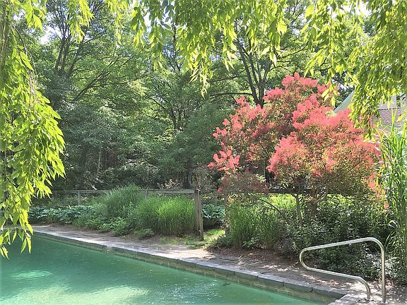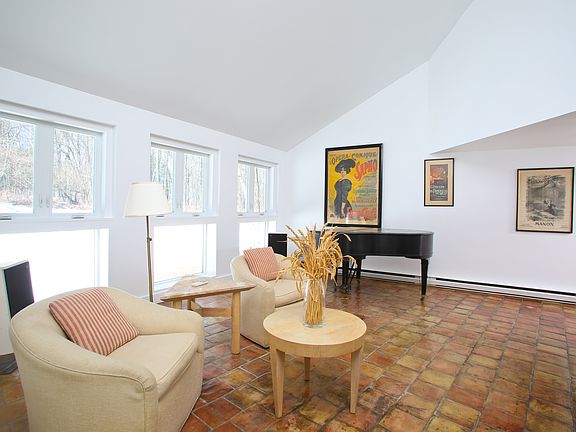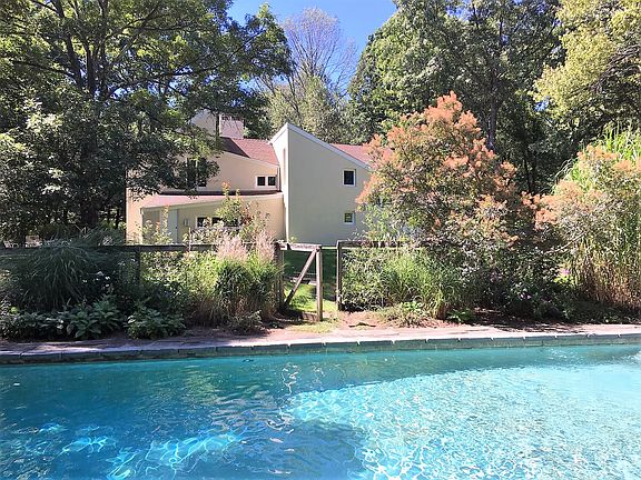 This property is a romantic retreat on 5 private acres in the scenic and sought after area of South Kent. It has very pretty gardens and a heated pool as well as woodland glens on the land. The house is located in a quiet secluded spot to unwind from the world. Unique yet charming this stucco styled home features vaulted ceilings, tile floors, two fireplaces, a completely separate office with a full bath and built-in bookcases. Cooking is fun in the galley kitchen with windows overlooking the rear yard and pool. A cozy Den is near by perfect for reading or watching a movie. The Dining area also off the kitchen is intimate with bookcases, a fireplace, and a patio just outside through french doors. The living room has soaring ceilings as well as large windows and a fireplace. The second floor consists of two Master Suites and a guest room. The light in the house is wonderful. The sellers cherish the property and have always cared for it a comforting feature for the next owner. The Chic Village of Kent is just minutes away as are parks, private schools, The Housatonic River, Lake Warmaug, golf, Metro-North making this home a special and easy escape.