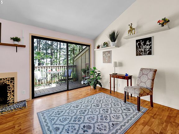 Lovely Condo in excellent southwest location. Easy access to the University of Oregon, downtown, city transit and all other conveniences. This two bedroom 1 1/2 bath unit features a main floor living area with vaulted ceilings, laminate flooring, wood burning fireplace and wood deck over looking the tree filtered City and Valley view. You can actually "see" the big "O" on Autzen football Stadium. Cute kitchen with freshly painted cabinets, tile counter top, newer refrigerator (included )and updated light fixtures throughout most of the unit. The main bath has been completely updated with newer fixtures, vanity, tile floor and tub enclosure. Extra storage room on the lower level with room to add washer and dryer. Additional deck and storage area on lower level. Exterior roof , front decking and walk ways have been replaced within the past few years. Don't miss the recently renovated recreation center that offers a full kitchen and large gathering area. Save on an outside gym membership by using the full workout gym, sauna, inground swimming pool and spa tub. Hike, ride or run on the Ridgeline trails or relax on your private deck listening to the sound of birds singing. In addition to all these great amenities, the home owners association dues takes care of all your common area grounds maintenance, tree service, exterior unit maintenance "And" includes your internet, cable, water , sewer and garbage. Grab your suit and spend this summer lounging by the pool! A Great investment opportunity or chance to live in a resort like setting.