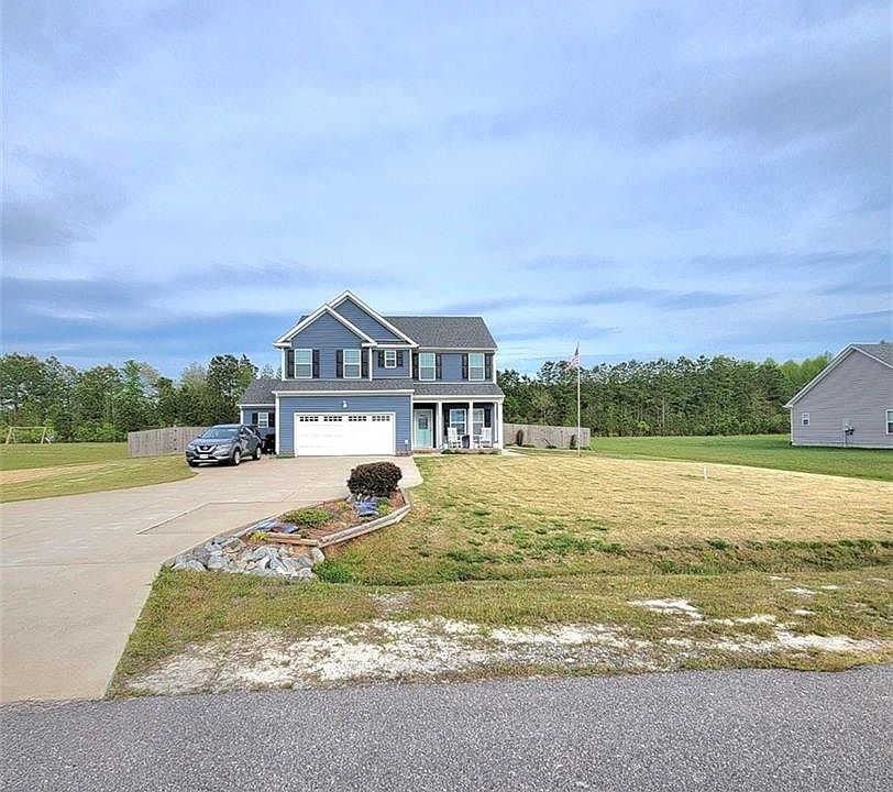 This beautiful home is the Warwick Model built by Quality Homes of Currituck. Main Floor includes an open floor plan w/9 ft ceiling, bedroom & full bath, great room w/fireplace, formal dining room w/hardwood floors, kitchen w/center island, granite countertops, a double wall oven, pantry, and lots of cabinets. Second floor features Large Primary bedroom w/ensuite bath that includes a double vanity, 5ft jetted soaking tub & separate shower, 3 additional bedrooms and a laundry room. Knock down plaster walls throughout. Exterior features 30 yr architectural shingles, privacy fence, seamless gutters & downspouts, storage buildings, 12'X14'concrete patio, extra concrete for a wide driveway, well pump, and beautiful landscaping!