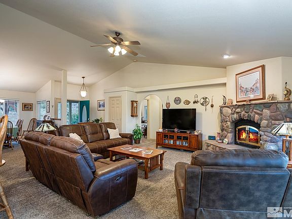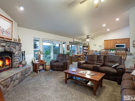 Welcome to your dream home in lush Smith Valley! This extraordinary listing presents a remarkable 3-bedroom, 2.5-bath home with fans and vaulted ceilings in each room, ample storage space, custom river-rock fireplace, 2X6 perimeter walls, bonus storage room above the 3 car garage, and a 1728 sq ft pole barn/shop on an elevated 4.3 acre view lot in the highly desirable west side of the valley. Breathtaking scenery surrounds this property which is very near thousands of acres of BLM land for you off-road..., ...enthusiasts! Come and see this before you lose this great opportunity to have it all!!