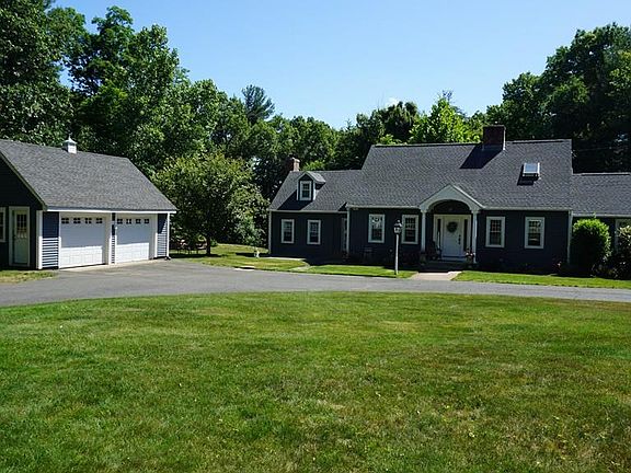 Pride-of-ownership and privacy abound in this 8 rm, 4 br, 2.5 bath Cape set on 4.81 secluded acres. The kitchen boasts a hw floor, ss appliances, granite counters, barn door, eat-in area, and access to the patio. The family room has a hw floor, built-in window seats, pellet stove, and lots of natural light. The cozy sunken living room has a beamed vaulted ceiling and wood stove. The master br has a hw floor, built-ins, a walk-in closet, vaulted ceiling w/skylight, and access to the huge master bath, which boasts a double vanity and a "serenity now" jet-tub room. The 3 other brs offer lots of built-ins and charm. The finished basement could be a play room, media room, etc. The outdoor oasis offers 100% privacy on park-like grounds, fenced-in backyard, in-ground pool w/pool house, hot tub, fire pit, stone patio with built-in umbrellas, a playscape area, an English garden, fruit trees and blueberry bushes. Oversized 2-car garage, newer roof, sprinklers, cvac, new electrical panel, & more.
