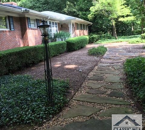 Very desirable neighborhood with century old trees & established landscaping, close to downtown Athens, hospitals, shops, and park. This lovely home has had many renovations over the years. The original hardwood floors are under the living room carpet and through the main living areas. A lovely flagstone path leads to the front stone covered porch. On entering, you will discover a big enough family room for any occasion. To the left is a stone fireplace which shares the chimney of the kitchen fireplace. Your eyes will be drawn to the wall of glass that opens to a huge screened porch where gentle breezes will be your lullaby. No insects to spoil outdoor meals and fun! A babbling brook with charming bridge is kept in bounds by a concrete wall. Lush landscaping provides a tranquil setting. The master bedroom with adjoining bath is to the left of the foyer. The kitchen is very large & offers plenty of dining space in front of the fireplace. Many updates have been made to the kitchen. Alternatively, dining & living space is available in the oversized family room. Off the right hallway, there are two bedrooms which share a bathroom. The owners added space by building in the carport. Ready to Retire? This low maintenance ranch, with no grass to cut, and close to everything is waiting for you!
