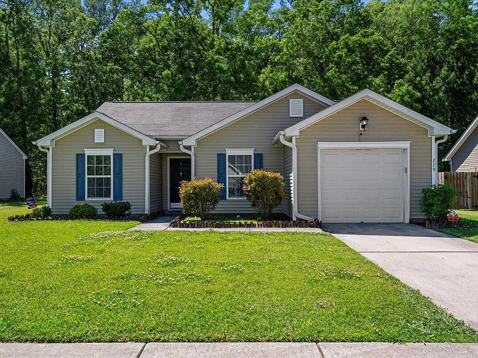 This charming ranch-style home, meticulously cared for by its sole owner, boasts 3 bedrooms and 2 bathrooms. It is the perfect place for a starter home or rental property for investors looking to expand their portfolio. Situated on a wooded lot this home features engineered hard wood floors throughout, vaulted ceilings, and a thoughtfully designed open-concept layout. The owner's suite features a garden tub, stand-in shower, and walk-in closet. Neighborhood amenities include a pool and playground. This home is located minutes from the Naval Weapons Station/Joint Base Charleston, John McCants Veteran Park, and the Goose Creek Community Center.