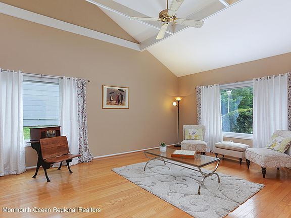 Don't miss this chance in the sought after CONTEMPRA section of Matawan! This 5 BDRM 2.5 BATH is the largest model located in a perfectly designed,quiet neighborhd on a CUL-DE-SAC that backs up to serene&wooded Greenacres w/a babbling brook.Entering Foyer see a SUNNY,SPACIOUS, Livingrm w/CATHEDRAL CEILINGS&HWF. Step down to cozy DEN w/ HWF & a WB FP w/ Flr to Ceiling Brick Mantle. LG FAMILY RM w/HWF bringing the OUTSIDE IN w/ Lrg WINDOWS.FORMAL DINING RM.This OPEN FLOOR plan provides abundant gathering space.Enjoy cooking with a view from your SOLARIUM in your EIK w/CustomWOOD Cabinetry,GRANITE Counters,SS APPLIANCES that opens to your PRIVATE outdoor DECK & lush green retreat.MASTER BDRM w/Full Bath,HW floors,Walkin Closet.Laundry Rm. 2car GARAGEw/FullATTIC STORAGE. Close to GSP, NJTransi One year American Home Shield warranty included.