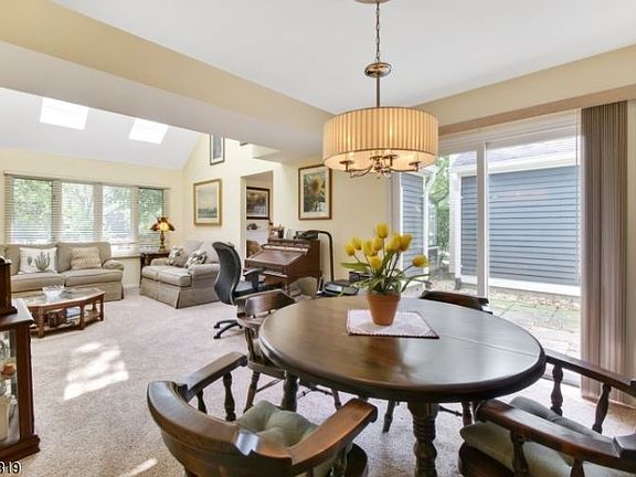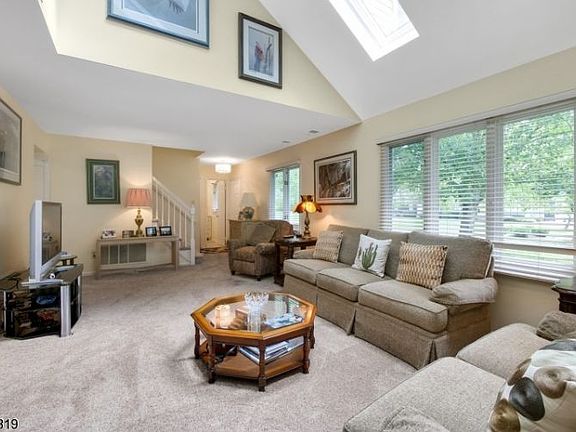 Most desirable Brentwood model with private courtyard!!! Open floor plan. Wood floors under carpet on 1st floor. Updated kitchen and all baths. Spacious LR with vaulted ceilings and skylights. DR with chair-rail and slider to courtyard. Den office with fireplace. Sunroom. Spacious MBR. 2nd BD with walk in closet. Attached garage. Near Lord Stirling Stables. Convenient location to town center, schools, shopping, highways and NYC Midtown Direct trains. Beautiful community, 150 homes on 53 acres of manicured grounds with outdoor pool and tennis court. Excellent Bernards Twp. schools