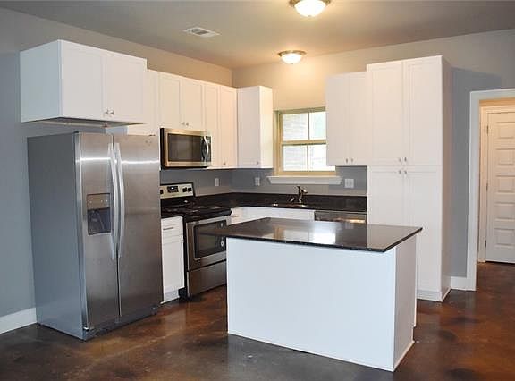 Beautiful duplex, minutes from the interstate. Granite counter tops, stained concrete flooring, spacious bedrooms. Refrigerator, washer, dryer, microwave, and stove/oven all included as well as lawn care. Additional storage room right off of back patio. Available now.
