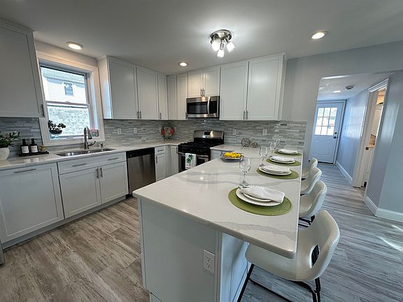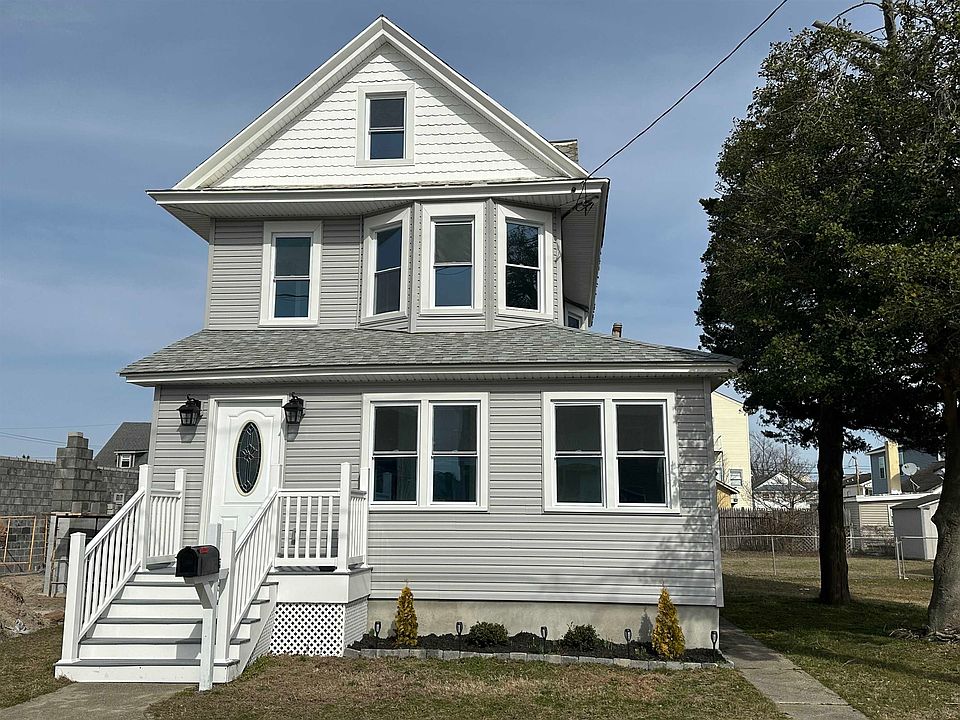This is a rare opportunity to own a truly turnkey single family home in North Wildwood. Everything in this home is new and never used as it has been completely rehabbed down to the studs. Why pay new construction prices when you can have something that’s been lovingly restored with great and tasteful finishes. There are 5 bedrooms and 2 full bathrooms making this property super spacious for most families and has the ability to command top rental dollar if you choose to do that. This property is situated on a quiet street in a great little neighborhood just over a block and a half from the Bay and a short stroll to the beach. You can easily get to all the action in North Wildwood but live away from it with a home like this. When you enter this home, you are greeted with an open floor plan that includes the living room and spacious kitchen area. The kitchen has modern stainless-steel appliances, timeless white cabinets, stone countertops, eat-in counter area that seats four, space for a dining table, and mini bar area with its own fridge, sink and storage. Behind the kitchen is a large pantry closet, first floor bedroom, and full bathroom with tub and shower. The back door leads to a large deck for all your entertaining and grilling needs and has steps to the fenced in yard. Off the main entrance is a hallway that leads to the laundry room with new washer and dryer, sink, and storage. On the second floor are 2 bedrooms, one very large one that serves as the owner’s retreat. There is also a full bathroom finished in a neutral palate which has a tub and shower. The third floor has two more nice sized bedrooms but one of these could certainly serve as a home office, playroom, or exercise room. There are 9 new mini splits throughout this home to keep it well cooled or heated depending on the season. This home has all new vinyl siding, windows, tankless water heater, plumbing, electric, and will provide for low maintenance living for years to come. Property has great rental potential. Easy to show. Please schedule your showing to come see this wonderful property as there aren’t many like it in the Wildwoods.